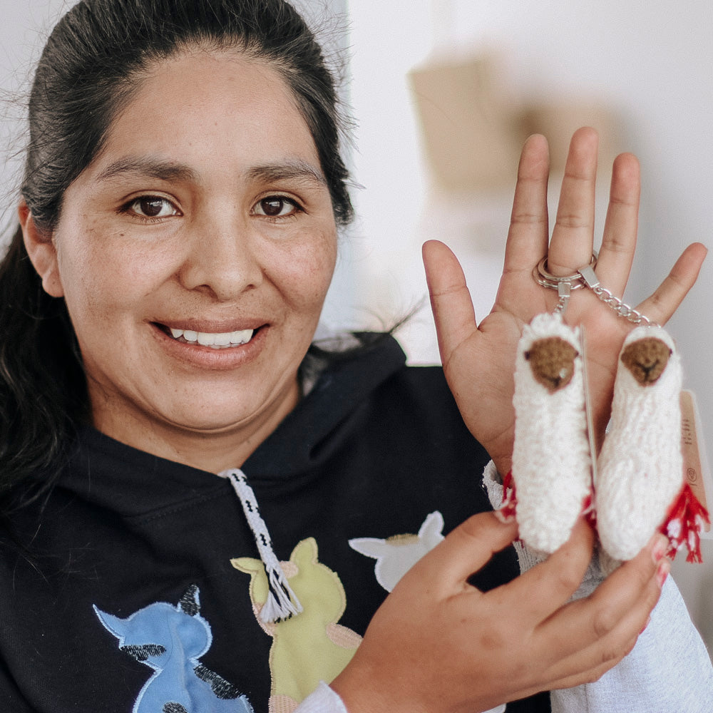 Nació en Puno y se unió a nuestras capacitaciones en el 2018, convirtiéndose en una de nuestras principales tejedoras. Entre los productos que elabora se encuentra el llavero alpaca y ahora está trabajando en un nuevo producto que lleva su nombre en honor a su arduo trabajo.